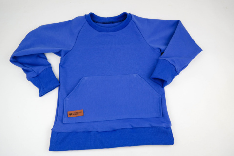 Prosta bluza z raglanowymi rękawami i dużą kieszenią. która pomieści dziecięce drobiazgi. Bluza będzie idealnym dodatkiem do każdego rodzaju spodni lub spódniczki. Wygodna i miękka nie krępuje ruchów dziecka.