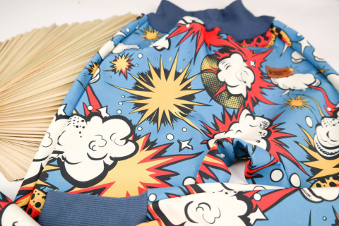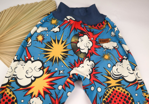 Uszyte w swobodnym kroju aby nie krępować ruchów dziecka. Dół nogawki oraz pas wykończony elastycznym ściągaczem aby ubranie dopasowało się do dziecka i rosło razem z nim.